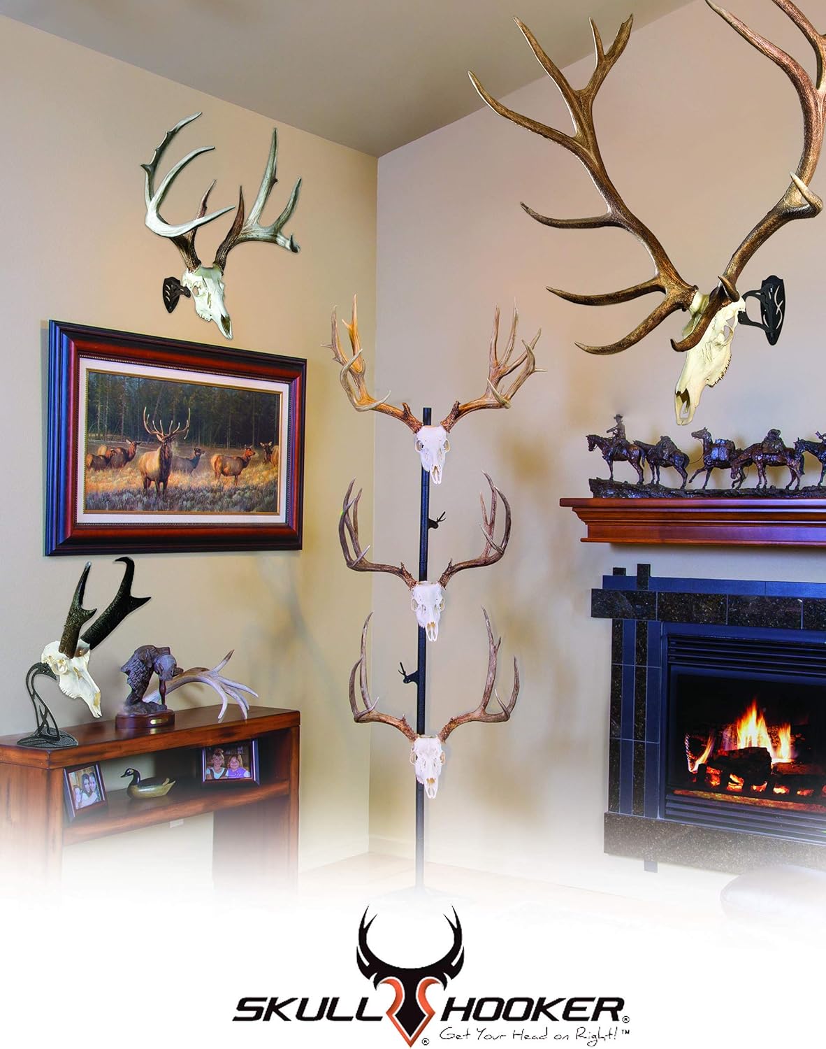SKULL HOOKER TABLE HOOKER TROPHY MOUNT The Skull Hooker Table Hooker is professionally finished and fully adjustable European skull mounting bracket designed to beautifully display your trophy with ease on your desk, table or shelf. The unique three-prong interface works with natural holes and crevices in back of all skulls and requires no drilling or modification to the skull. It's a great way to create an elegant display of your hard earned trophy. The Table Hooker works with cougar, bear, pronghorn, impala, deer and many other small to medium sized trophies. The Table Hooker is made of steel with a durable, attractive finish and weighs 3 lbs, offering enough weight to create stability for your precious trophy. Turkey mount not included. REALTREE has partnered with Skull Hooker to offer REALTREE branded Table Hookers. The REALTREE antlered logo is cut into the Base of the Table Hooker. WHAT IS SKULL HOOKER? Skull Hooker naturally showcases your trophy game animal in the most stylish and realistic way. This dynamic mount system is not only incredibly sturdy, but also quick and easy to install. Today, the product line has expanded into table and floor displays for both European and Skull Capped trophies.