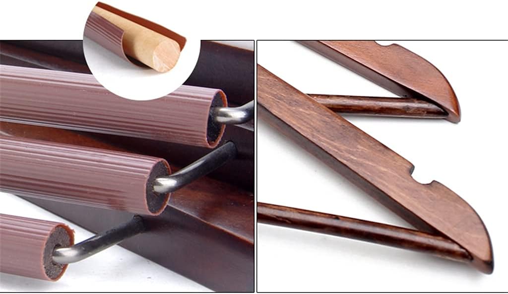 360 degree rotating, easy for hanging and takePlease note that the hook is screwed in by hand, also it can be screwed out manually"7" shape pants bar, increase space foe hanging pantsUpgrade: More space for hanging pantsAnti-slip wooden bar + Rubber sleeveMaterial: woodSize:44*26*1.2 cm for man40*24.5*1.2 cm for womanColor: Natural color, vintage colorProducts include: 5pcs hangersNote:1. Due to the light and screen difference, the item's color may be slightly different from the pictures.2. Please allow 1-2 cm differences due to manual measurement.Ergonomic Anti-Deformation Structure: Features a short neck and wide shoulder arc design that fits the shoulder lines of clothes. It avoids shoulder marks shirts and sweaters, prevents neckline stretching and deformation, and keeps clothes in neat shape