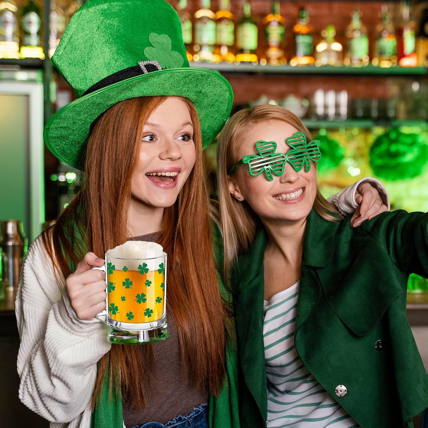 Features: Festive design: Our drinking glasses are St. Patrick's Day themed with green shamrock designs, perfect for both daily use and holiday parties. Widely used: Sturdy and reliable, they are suitable for both hot and cold drinks, and can be used at office, home and holiday parties. Specifications: Material: glass Size: 3.7 x 4.1 inch Package Includes: 1 x Glass Mug