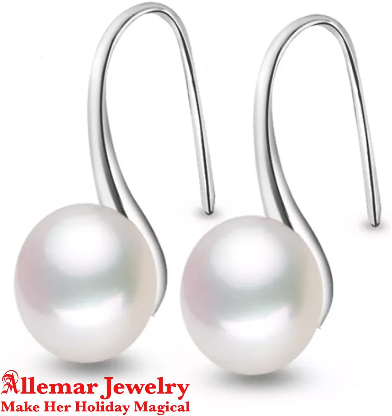 Elevate your jewelry collection with these elegant Freshwater Pearl Swoop Sterling Silver Earrings by Allemar. Each earring features a lustrous freshwater pearl delicately suspended from a gracefully curved sterling silver hook, creating a sophisticated swooping silhouette that catches the light with every movement. The classic combination of pure sterling silver and luminous pearls makes these dangle earrings a versatile accessory that transitions seamlessly from day to evening wear. The smooth, contemporary design allows the natural beauty of the pearls to take center stage, while the secure sterling silver hooks ensure comfortable, worry-free wear. Perfect for special occasions or adding a touch of refinement to your everyday style, these timeless earrings make a stunning addition to any jewelry box and serve as an ideal gift for those who appreciate understated luxury.