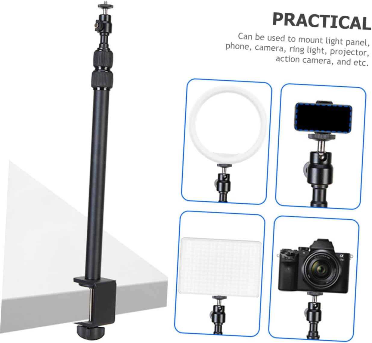 Package Include 1 x camera desk mount Characteristics Bearing weight: 1kg/2. desk mount Minimum height: 385mm webcam mount -Color:Black Stand for DSLR Camera -Size:49.00X6.00X5.00cm/19.26X2.36X1.97in dslr desk mount Storage height: 49mm Tabletop Bracket Stand Maximum height: 935mm camera stand -Material:Aluminum alloy camera desk mount Connector: 1/4 inch Desktop Light Stand - The height of the bracket (Working height of extension pole: 385-935mm) can be adjusted, so that the lighting equipment can be easily and stably raised and lowered Ring Light Tabletop Mount. - Standard 1/4 inch screw design, easy to support various photography lighting equipment webcam stand for desk. - Multi-purpose, fit for set- , LED light, camera, mobile phone and other 1/4 inch Adjustable Desk Mount Stand. - Without other tools, you can adjust the fixture to fit different workbenches by rotating the screw light stand. - Outstanding workmanship, reasonable design, stable and practical, will bring you a using Stand with Ball Head.Goods DescriptionTabletop Bracket Stand The craftsmanship can serve you well without breaking easily.Adjustable Desk Mount Stand This is a very practical camera desk mount.desk mount The camera desk mount is convenient and practical, with excellent texture, and without being easily damaged