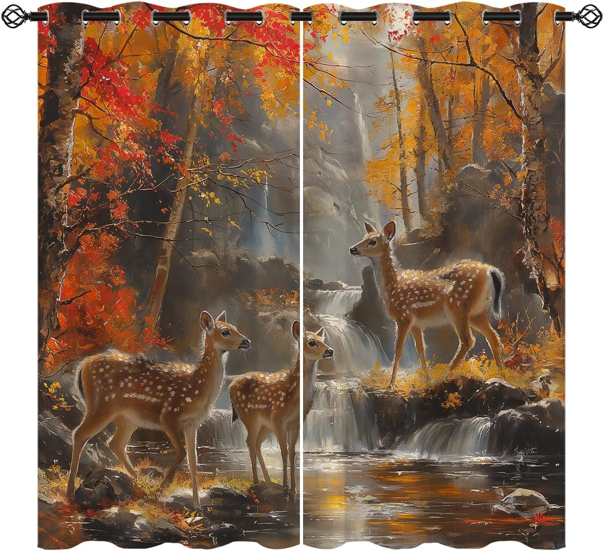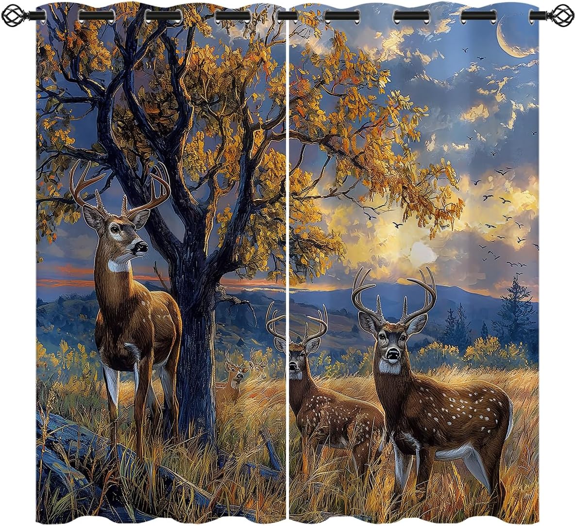 These print curtains are perfect for Living room, bedroom, kids room, kitchen, yard, patio, parlor, sliding door with Wildlife Deer,Forest Animals Hunting pattern.- Unique design:· Save energy costs by insulating against heat and cold.· Reduce noises from busy streets and high-traffic areas.· Protect furniture from sun damage and fading.· Provides complete privacy when needed· Perfect for any bedroom, office kids room and living room.- Package Included:· Blackout window curtains 2 Pcs set ( two panels).- Material:· Our Blackout Curtain Liners are crafted from a durable soft and thick triple weaved blackout fabric which can block out sunlight and UV rays. The darker color of the fabric, the more light it can block.- Easy Care Instructions:· Machine washable in cold water· Do not bleach.· tumble dry on low· low temperature ironing- Notes:· For your curtains to be more perfect, please choose a size 5-10 Inch larger than the actual window width.· here may be slight differences in colors on different displays. If you have any questions about the product, please feel free to contact us.