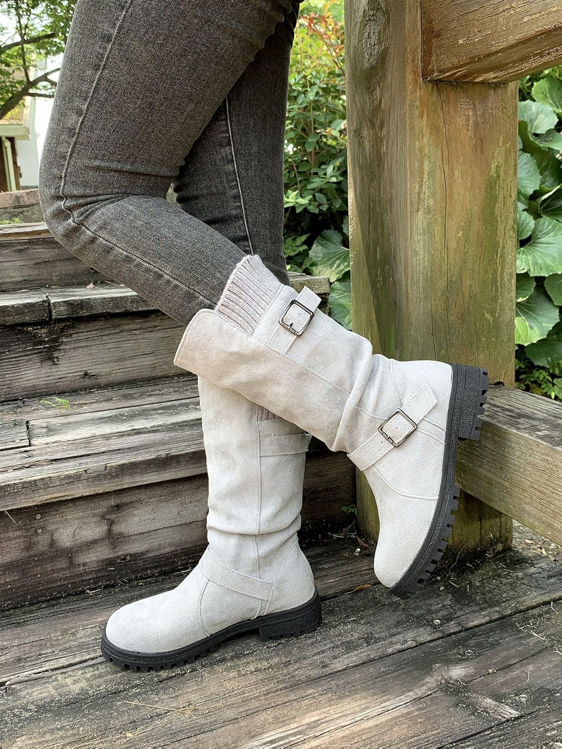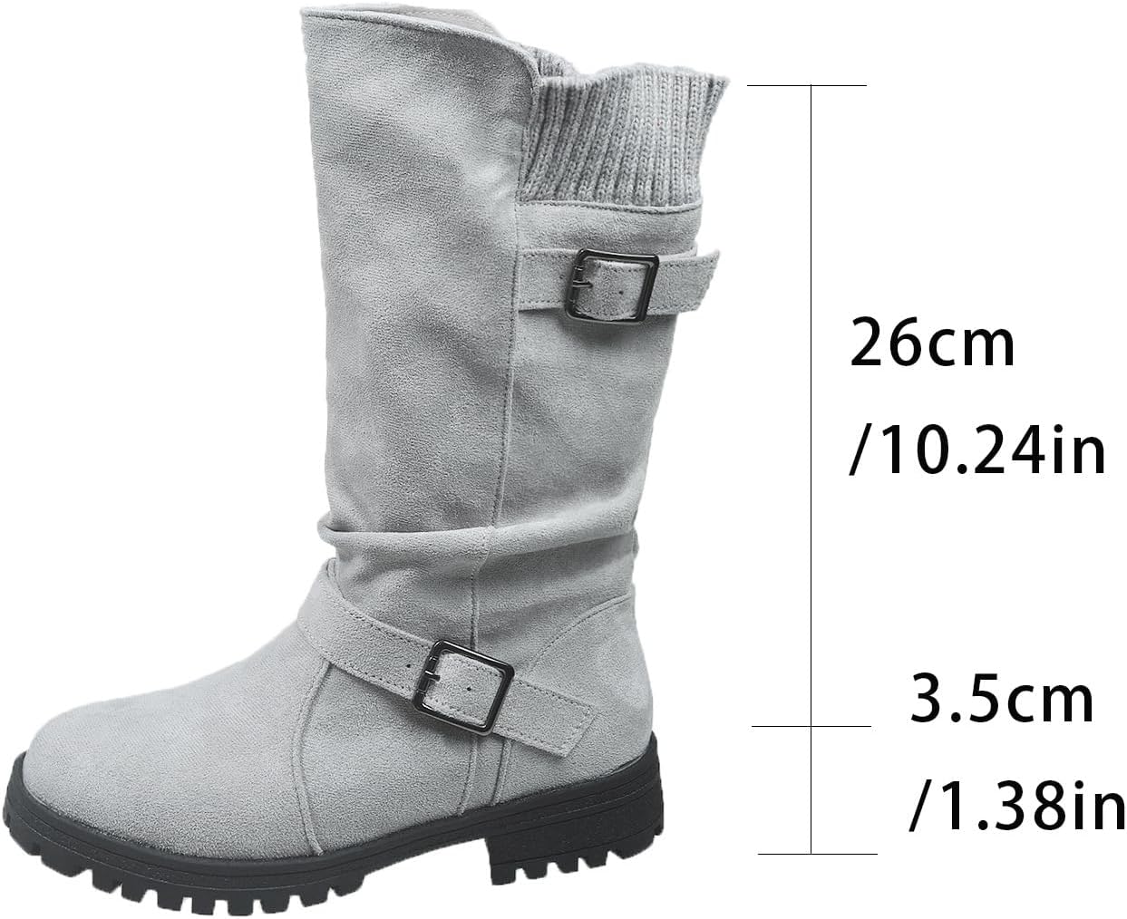 Women's Faux Suede Belt Buckle Woolen Mid-Calf Boots, Vintage Solid-Color Biker Riding Boots with Adjustable Buckle, Non-Slip Casual Dress Shoes【Buckle Style】Made of faux suede with buckle decor, these mid calf dress boots blend chic and elegance【Wide Calf Comfort】Slouchy wide calf design with pull on closure, suitable for womens wide calf boots【Low Block Heel】Low block heel provides subtle height and all-day comfort, ideal as mid calf boots for women low heel【Fall Spring Must-Have】These womens fall boots mid calf match various outfits, ideal for casual or dressy occasions【Versatile Durability】Versatile to pair with jeans/dresses, a trendy choice as womens dress boots Specifications:Name: Women's Mid Calf Dress BootsMaterial: RubberColors: Gray, Black, Red, BrownSizes: 36-42 EU Package Includes:1*Belt Buckle Woolen Mid-Calf Boots
