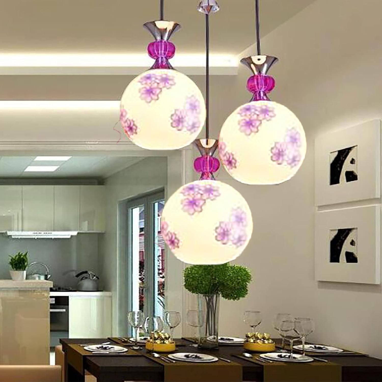 YUEGOO Chandeliers,3-Light Modern Minimalist Chandelier Creative Dining Room Irregular Light round Ceiling Light Fixture for Bedroom Study Dining Room Kitchen Lighting/Chrome + Purple Flowers/35 x 100Cm