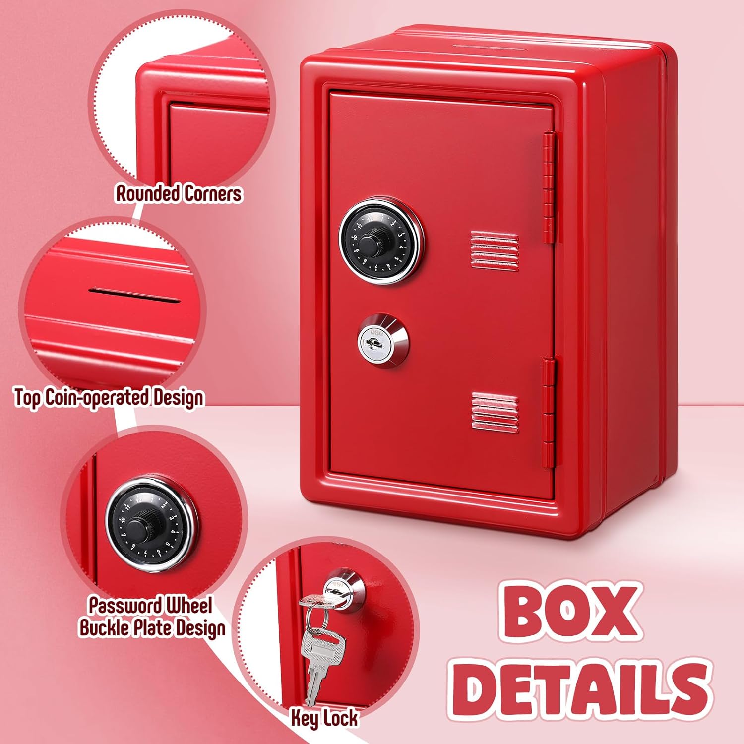 Features: Robust & Portable Safe Storage way: Crafted with a durable iron design featuring rounded corners, our locking steel cash box ensures long-lasting durability. Its lightweight and compact construction makes it nice for secure, on-the-go storage, allowing for discreet concealment wherever needed. With a privacy key lock and two provided keys (one for daily use and one for backup), your valuables remain secure at all times. Versatile & Organized Cash Management System: Our cash box comes equipped with a removable tray designed to keep coins neatly organized. The additional storage space beneath provides ample room for bills, receipts, cards, or keys. Ideal for a range of settings, from schools and supermarkets to homes and yard sales, this versatile cash box also makes a great gift for occasions like birthdays, Mother's Day, or Christmas. Its compact design ensures easy portability while keeping your sensitive items safe and confidential. Specifications: Material: metal Color: black, red, silver Size: about 7.1 x 4.7 x 3.9 inches/ 18 x 12 x 9.9 cm Package includes: 3 X locking steel cash box Notes: Manual measurement, please allow slight errors on size. The color may exist a slight difference due to different screen displays.