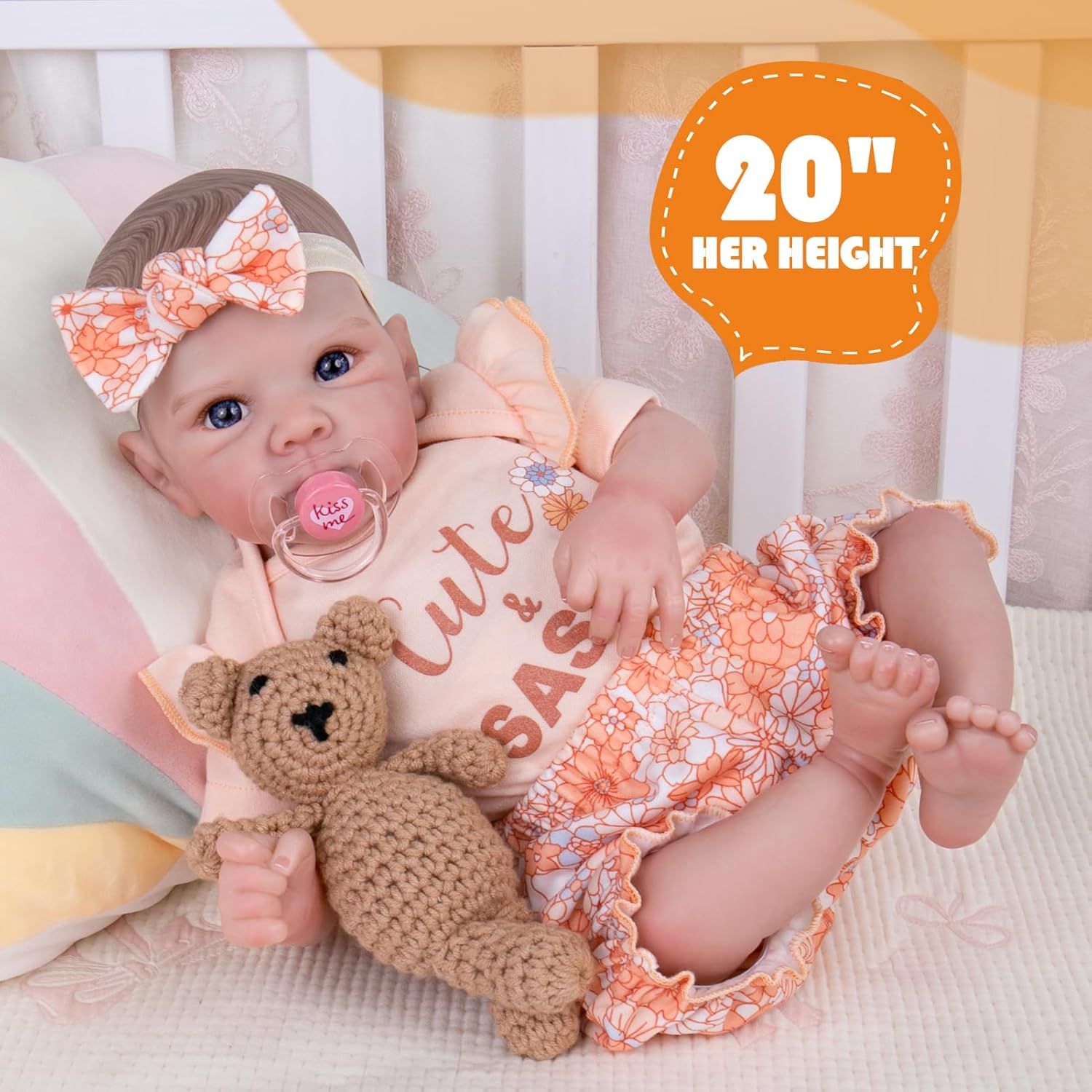 | Included Components | 20-inch Reborn Baby Doll *1, Beautiful Clothes Set *1, Birth Certificate Card *1; Diapper *1, Magnetic Pacifier *1, Nursing Bottle *1 |