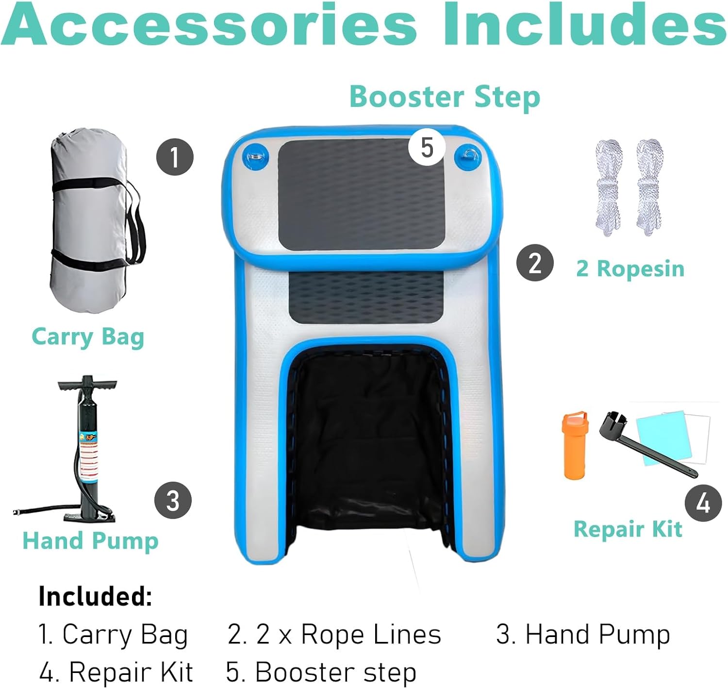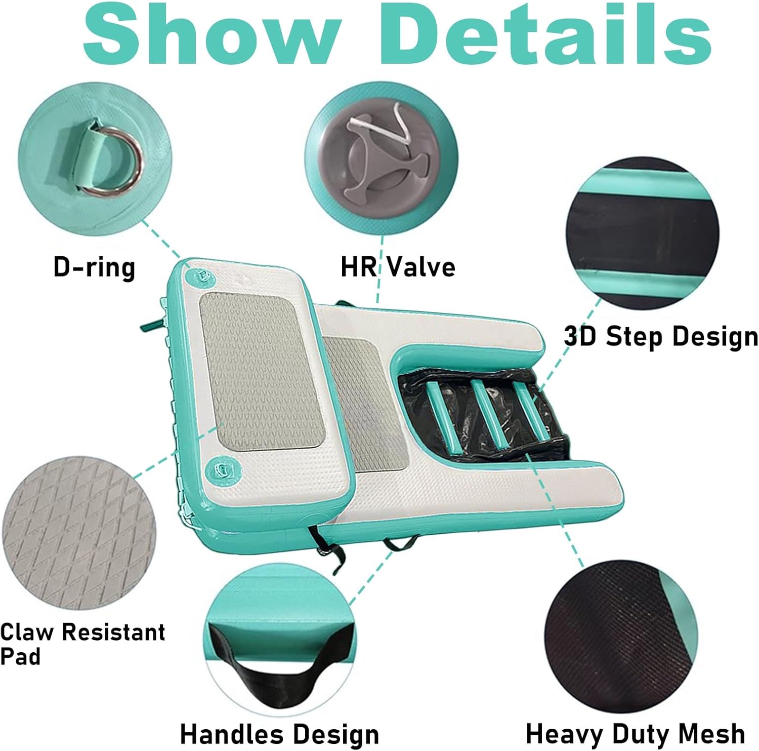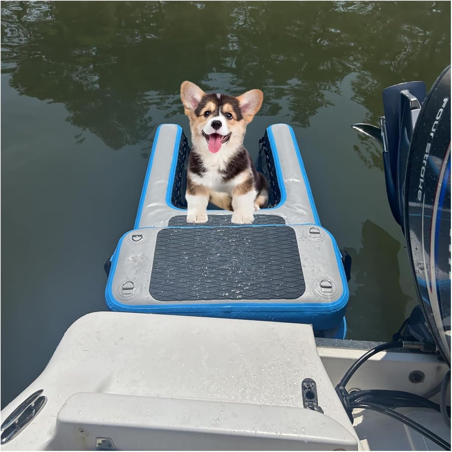 This dog ladder is crafted from high-quality, durable materials, ensuring it can support even the largest breeds with ease. Designed for versatility, this floating dog ramp allows your furry friend to effortlessly enter and exit boats, docks, or pools, making it an essential accessory for water-loving dogs.Whether you're enjoying a sunny day by the pool, embarking on a pontoon boat adventure, or playing at the harbor, this ramp provides safe and convenient access to water. Imagine the joy of watching your dog swim and play while having everything you need right at your fingertips.Made from leak-proof Polyvinyl Chloride (PVC), this ramp is not only sturdy but also stable, preventing any unwanted rolling. The textured surface, combined with an EVA anti-slip pad, ensures your pet has a secure grip, allowing them to navigate safely. With dimensions of L 150 cm, W 90 cm, and H 10 cm, and a load capacity of up to 100 kg, this ramp is designed for functionality without sacrificing portability. Weighing only 8 kg, it’s easy to carry and store in the included practical carrying bag.Included in the package are: 1 dog boat ramp, 1 booster step, 2 ropes, 1 hand pump for quick inflation, and a repair kit for peace of mind. Set up takes just minutes, giving you more time to enjoy outdoor fun with your dog.Please note that manual measurements may result in slight dimensional variations. Additionally, due to lighting and display differences, the actual product may differ slightly in appearance from the images shown. Experience the ultimate in convenience and safety for your beloved pet with this essential water accessory.