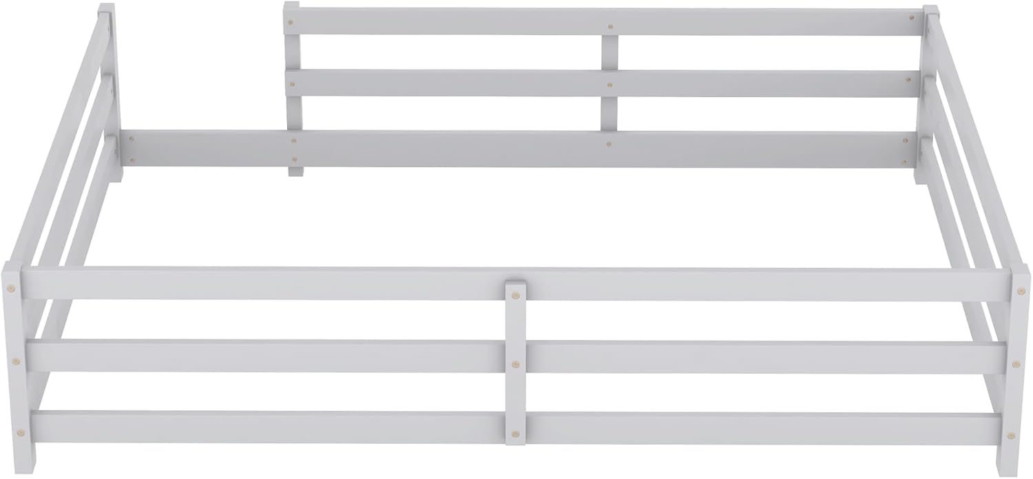 Create a Safe and Independent Space with MoproBeti Montessori Floor BedTransitioning from a crib to a big kid bed is a milestone. The MoproBeti Full Size Floor Bed is designed to make this transition safe, fun, and effortless. By adopting a true Montessori philosophy, we removed the traditional slats, allowing the mattress to sit securely on the floor. This design not only lowers the center of gravity for maximum safety but also ensures the bed can withstand any amount of jumping or playing without the fear of breaking slats.Why Choose Our "No-Slat" Floor Bed? Many parents worry about the durability of wooden slats. Our design uses the floor itself as the strongest possible foundation. It means no squeaking, no sagging, and zero maintenance.Key Features:Sturdy Pine Construction: Made from solid pine wood for long-lasting durability.Full Fence Guardrails: 15.7-inch high rails provide a secure boundary for restless sleepers.Intact Structure: The uncut guardrail design enhances overall frame stability.Multi-functional: Perfect as a sleeping bed, playpen, or reading nook.Specifications: Product Type:Floor Bed / Montessori Bed Size:Full Color :Natural /White/Grey Material:Solid Pine Wood Overall Dimensions:77"L x 58.1"W x 15.7"H Inner Dimensions:77"L x 54.5"W (Fits Standard Full Mattress) Suggested Mattress Thickness 6 inches or less Guardrail Height:15.7 Inches Assembly Time: Approx. 20 Minutes Packages number:1 Package Contents:1 x Floor Bed, 1 x Assembly Kit, 1 x Instructions