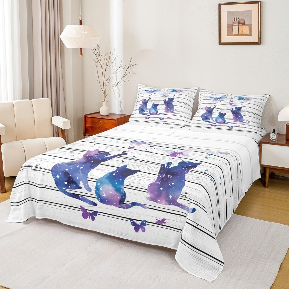 Package Include:1 fitted sheet,1 flat sheet, 1 Pillowcase or 2 Pillowcases;Our high quality designs match any decor; High-end Fitted Sheet Set Pattern Bedding Set, simply decorating your rooms any time you want, bringing you fresh feel for year round use; Durable: Made from 100% polyester microfiber, the sheet set offers long-lasting strength, anatural resistance to shrinking and a noticeably soft hand feel; Size Information: Twin size :3pcs Fitted Sheet set, 1 Fitted Sheet 39"W x 75"L x 16"H,99 x 190 x 40 cm , 1 Flat Sheet 66"W x 96"L,170x245 cm , 1 pillowcase 20" x 30",51x75 cm ; Full size :4pcs Fitted Sheet set, 1 Fitted Sheet 54"W x 75"L x 16"H,137 x 191x 40 cm , 1 Flat Sheet 81"W x 96"L,205x245 cm , 2 pillowcase 20" x 30",51 x 75 cm ; Queen size :4pcs Fitted Sheet set, 1 Fitted Sheet 60"W x 80"L x 16"H,152 x 203x 40 cm , 1 Flat Sheet 90"W x 102"L,230x260 cm , 2 pillowcase 20" x 30",51 x 75 cm ; King size ,4pcs Fitted Sheet set :1 Fitted Sheet 78"W x 80"L x 16"H,198 x 203x 40 cm , 1 Flat Sheet 90"W x 106"L,229x270 cm , 2 pillowcase 20" x 36",50 x 90 cm ;Personalize your bedroom:Beautiful design and colorful print, makes your bedroom unique and brings you a wonderful dream;Washing instructionsMachine wash separately in cold water,hang dry, do not bleach; Occasion:The soft Fitted Sheet bedding sets designed for Children ,Adult, Men, Women, Teens; This Fitted Sheet set is also suitable for full seasons, Spring, Summer, Autumn and Winter;After Service: We are dedicated to ensuring you have an excellent experience, from the moment you place your order until you sleep on your new bedding the first time;If you have any dissatisfaction with the product, we will provide a solution as soon as possible;