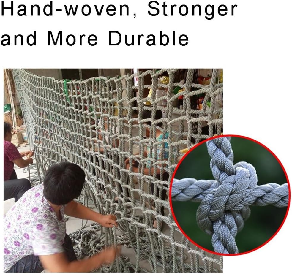 Discover a wide selection of customizable hand-woven protective nets in our shop. With options for size, color, and style, you can find the perfect fit for your needs. If you have specific requirements that are not listed, please don't hesitate to reach out—we are dedicated to providing exceptional service and ensuring your satisfaction. Explore our diverse range of climbing nets, designed for both indoor and outdoor use. Our climbing nets are made from durable 8 mm coarse rope, featuring a 10 cm pore diameter, and are available in various sizes that can be tailored to your preferences. Whether you need a safety solution for your balcony, stairs, or patio, our climbing nets can be easily cut to fit your desired shape without compromising their strength. Safety is our top priority, especially when it comes to your children. Our climbing rope ladders offer a safe play environment, allowing your kids to enjoy active fun and healthy exercise indoors or outdoors. Unlike other children's climbing ropes, our nets are designed to be exceptionally strong and reliable, giving you peace of mind as your children play. Versatile in application, our rope netting is ideal for protecting balcony railings, stair banisters, and patios, as well as serving as a decorative element or site fence. Experience the satisfaction of knowing that your loved ones are safe while they explore their adventurous side with our climbing nets.