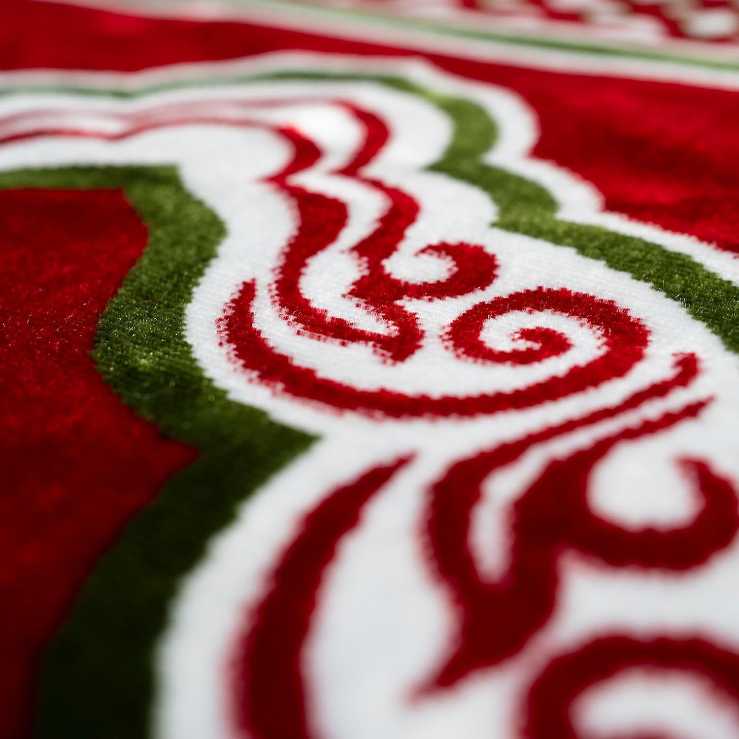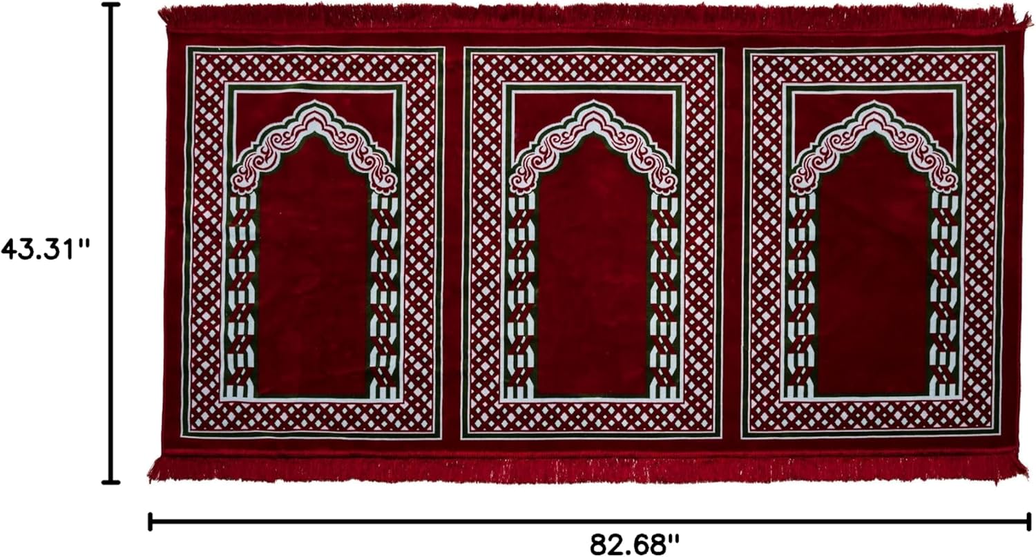 Modefa Islamic Prayer Rug ---> Looking for a sajjadah perfect for large gatherings? You've found it! Our multi person Muslim prayer rugs are great for families, groups, or in the masjid! Made out of plush velvet and available in a wide variety of sizes and designs! Amazing plush praying rug that makes for a good Muslim gifts for men for any special occasion! Also great Islamic gifts for women! Why We Love It ---> What an incredible large prayer rug! Features a beautiful red, floral pattern. Combine that with its wide multi person design and you've got a janamaz that is sure to wow. Perfect Islamic gift or Eid gift or Ramadan gifts. Thickness Scale ---> 6/10: Our Modefa Thickness Rating on this Turkish prayer carpet is a 6 out of 10. This means it is a standard thickness plush prayer rug. Great Muslim rug and namaz carpet for daily salah prayers for Muslims. Every Muslim needs a good quality janamaz prayers rug to perform the prayers as prescribed in Islam. Turkish prayer rug make for great Ramadan gifts for women and men! Quality You Can Feel ---> Our prayer rugs are made in Turkey, so you know it is quality you can trust! For centuries, Turkey has been a renowned producer of Islamic prayer rugs. You can rest easy knowing you pray namaz on a prayer mat that has been ethically produced in Turkish factories -- by Muslims, for Muslims. Quality You Can Feel ---> Our prayer rugs are made in Turkey, so you know it is quality you can trust! For centuries, Turkey has been a renowned producer of Islamic prayer rugs. You can rest easy knowing you pray namaz on a prayer mat that has been ethically produced in Turkish factories -- by Muslims, for Muslims.