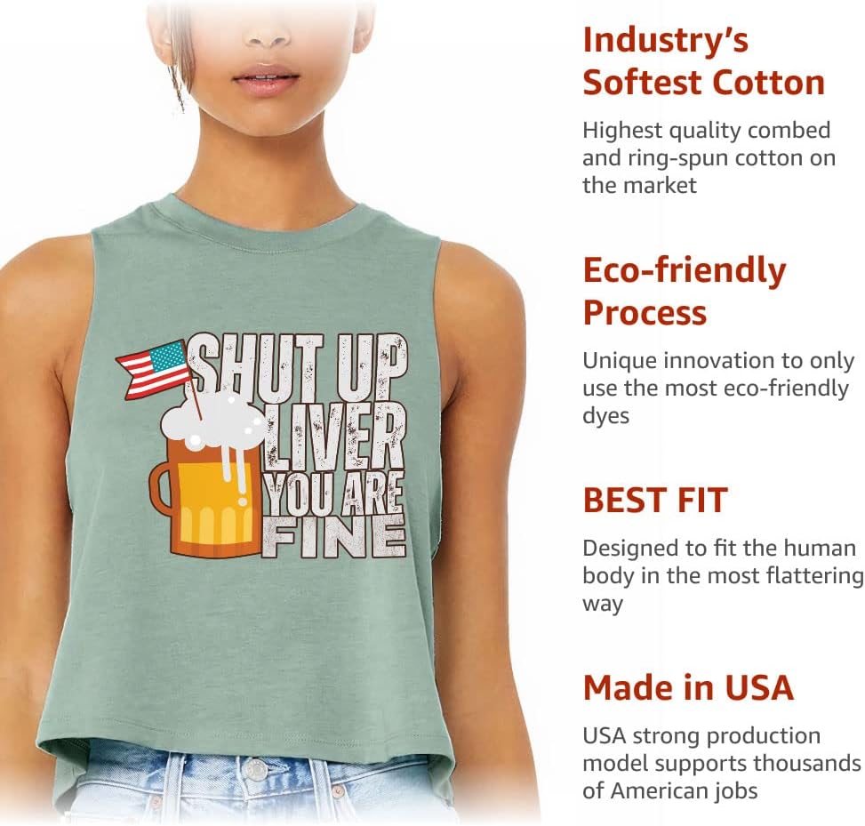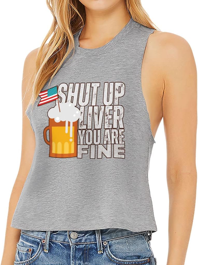 Cute and flattering Shut Up Liver You're Fine Racerback Cropped Tank is suitable for most indoor or outdoor activities, such as gym, yoga, running, hiking, beach or relaxing around the house. Pair Beer Print Women's Tank with your favorite sports bras, especially strappy ones, and high-waisted leggings, then you will enjoy cool and comfortable exercise throughout the summer.