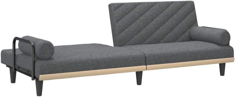 This dark grey convertible sofa bed smoothly changes from a stylish sofa to a comfy sleeping spot, great for having overnight guests. With its modern fabric cover and comfy cushions, it not only looks good in your living space but also gives you fantastic comfort for sitting and sleeping.Convertible Functionality: This sofa bed can switch from a lounge to a sleep space in no time at all. Perfect for small living spaces, it provides essential functionality for last-minute guests needing a comfy spot to crash.Comfort Enhancements: The padded armrests give you extra comfort for lounging. The cushions have zippers so you can easily clean them, making sure your sofa bed stays fresh and appealing.Modern Aesthetic: The sleek grey fabric fits perfectly in any contemporary decor, making it a standout piece for your lounge or living room. Its simple design works well with your existing furniture while upping the style factor.Sturdy Build: Built with a tough plywood frame, this sofa bed is reliable and can support up to 242.5 lbs. Its solid square legs give it stability, ensuring it's safe to use.Breathable Material: The breathable polyester fabric helps with airflow, enhancing comfort over long periods. Enjoy a pleasant relaxation experience whether you're sitting or sleeping on this versatile piece.Shape: RectangularMaterial: Farbic PolyesterFinish: Matte Indoor/Outdoor: Indoor OnlyCover Included: NoRoom: Living RoomCapacity: 1Maximum Number of People: 3Maximum Weight: 110 kgDimensions: 100 x 205 x 47 cm (W x L x H)Min-Max Dimensions: 13.0,18.5Surface Height: 7 cmLeg Height: 15 cmWeight: 25 kgSeat Depth: 55 cmSeating Capacity: 3Swings: NoDelivery Contains: 1 x Sofa bed, 2 x PillowAssembly Required: YesRecommended Number of People for Assembly: 2SKU: 351932