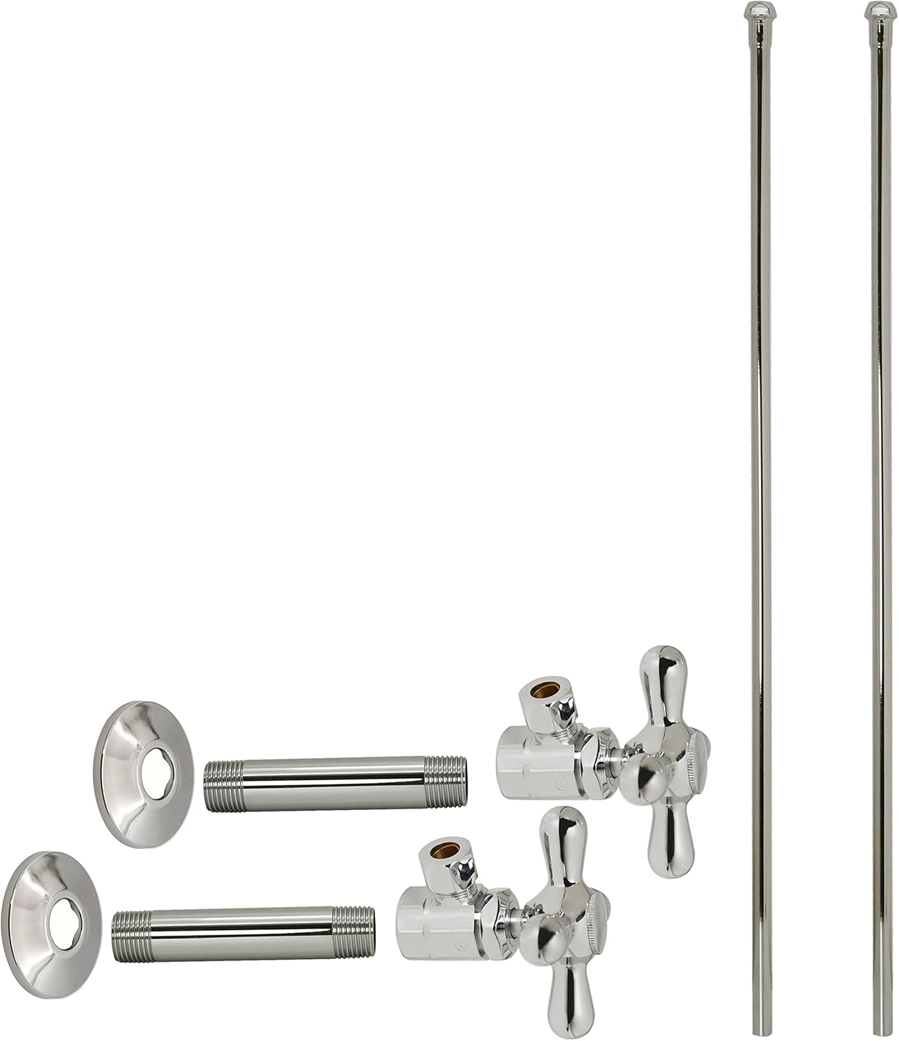 Product Description This Angle Stop Kit with Cross Handles is the perfect compliment for exposed sinks. It uses a 1/2 in. IPS threaded Inlets with a 3/8 in. OD Compression outlet with nut and ferrule. The kit features a 20 in. bullnose rigid risers for sinks. The valves uses traditional compression closures for positive seals. Available in a variety of stylish finishes, this item is sure to complement your existing fixtures. Be sure to check out our other model styles and VISIT OUR WESTBRASS STOREFRONT for more Kitchen and Bath items to stylize your home with convenient functionality and beauty. From the Manufacturer Westbrass was founded in 1935 by two brothers, Jack and Aaron Kagan, to serve the needs of all plumbing wholesalers on the West Coast. The product lines at the time included items such as faucets, valves, malleable fittings, etc. After becoming the premier distributor of plumbing products, the company was bought in 1985 by Max Homami. Seeing a boom in the Home Improvement Industry, Mr. Homami had a vision to make Westbrass the leader in Kitchen & Bath Accessories. The company currently manufactures its own products made of the highest quality materials. In order to ensure the excellence in the industry, these products are made to pass the highly stringent requirements of NSF, IAPMO, ADA and many other regulations. The Los Angeles-based company now sells a wide range of Plumbing Specialty Products, Bath Waste & Overflows, as well as Decorative Kitchen & Bath Accessories worldwide. Westbrass holds several patented items including the Deep Soak Overflow designed for extra-deep soaking in most bathing-wells, the Closing Linear overflow and several other intellectual properties. The customer base includes kitchen & bath showrooms, plumbing wholesalers and supply houses, OEM and ODM companies, as well as several national home centers.